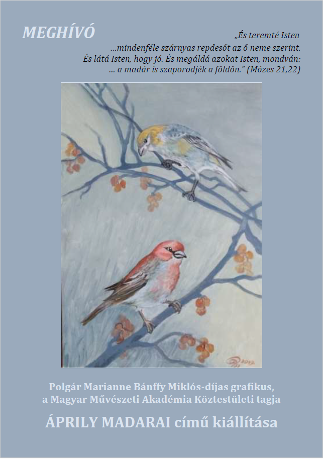 Szeretettel várunk minden érdeklődőt a Magyar Festészet Napja alkalmából megrendezésre kerülő Áprily madarai című kiállítás megnyitójára, amelyre október 17-én, 18 órakor kerül sor a Váci Mihály Művelődési Központban.